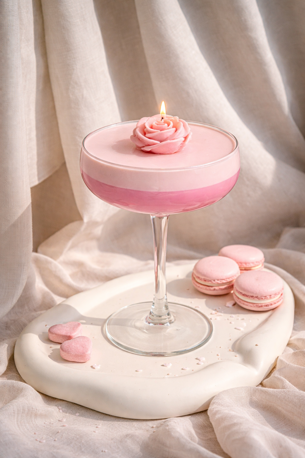 De populariteit van stijlvolle, romantische decoratie blijft groeien, en dat zie je ook terug in de kaarsenwereld. Love Martini cocktail kaarsen in zachte roze tinten met een lichte schuimlaag brengen direct warmte, elegantie en een luxe sfeer in huis. Met een subtiele bloem bovenop wordt het een verfijnde en opvallende blikvanger.