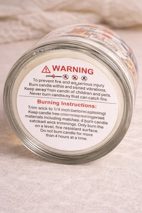 Voorbeelden van veiligheidswaarschuwingen zijn dat je een kaars niet onbeheerd laat branden, buiten bereik van kinderen houdt en op een hittebestendige ondergrond plaatst. In de praktijk gebruik je vaak beide labels tegelijk.