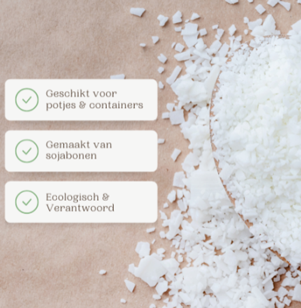 Sojawas is een natuurlijk product dat wordt gewonnen uit de bonen van de sojaplant. Het wordt veel gebruikt in de kaarsenindustrie als een milieuvriendelijk alternatief voor traditionele wassen zoals paraffine. Deze specifieke sojawas is ontworpen voor gebruik in containerkaarsen en biedt een uitstekende hechting aan glas en andere houders. Dankzij de fijne poedervlokvorm is de was eenvoudig te verwerken en gelijkmatig te smelten.