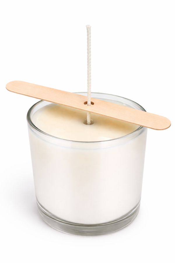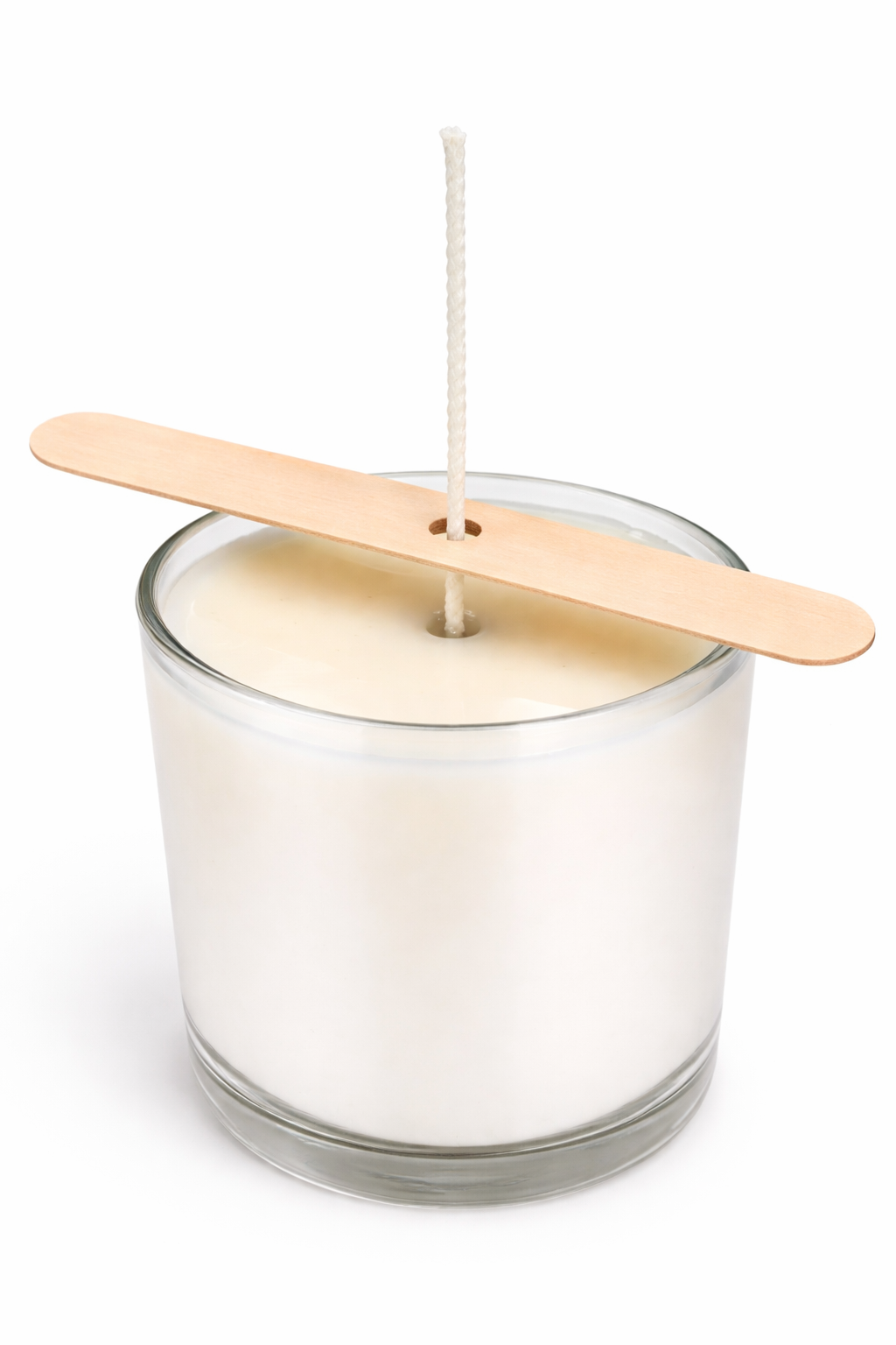 Stabiliteit: Tijdens het gieten van kaarsen in containers of vormen kan de lont gemakkelijk verschuiven of omvallen als deze niet op zijn plaats wordt gehouden. Houten lontstokjes worden gebruikt om de lont recht en gecentreerd te houden terwijl de was stolt.
