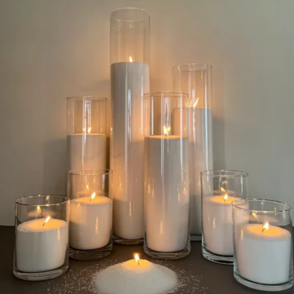 Tip: Vul de bodem met een laag kaarsenzand om kaarsen stevig en veilig te plaatsen. Combineer meerdere cilinder vazen in verschillende hoogtes voor een sfeervol geheel.